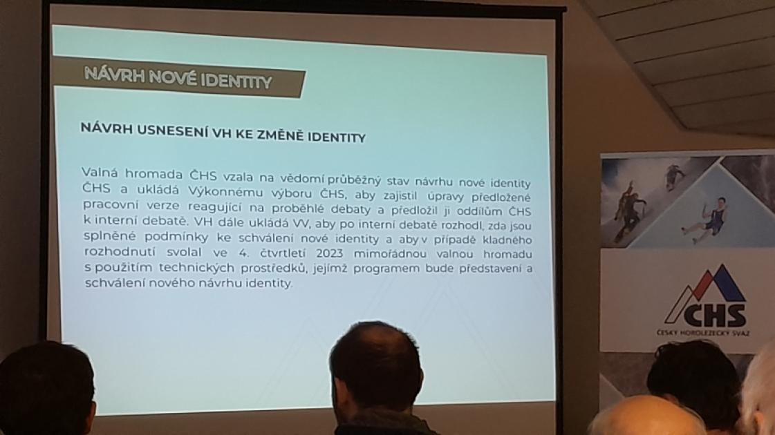 3. 3. Poslední bod, a to nejožehavější, změna identity našeho horosvazu. Dle mého názoru muselo být výkonnému výboru jasné, že pokud by se o celé věci hlasovalo, tak jak bylo navrženo, celé věc by byla smetena ze stolu. Místo toho, aby se schvalovala identita, se tedy hlasovalo o usnesení, že VH ukládá výkonnému výboru, aby se novou identitou zabýval a předložil nové pracovní verze nové identity zohledňující připomínky, které by předložil mimořádné VH, která by byla elektronická a svolána ve 4. čtvrtletí 2023.