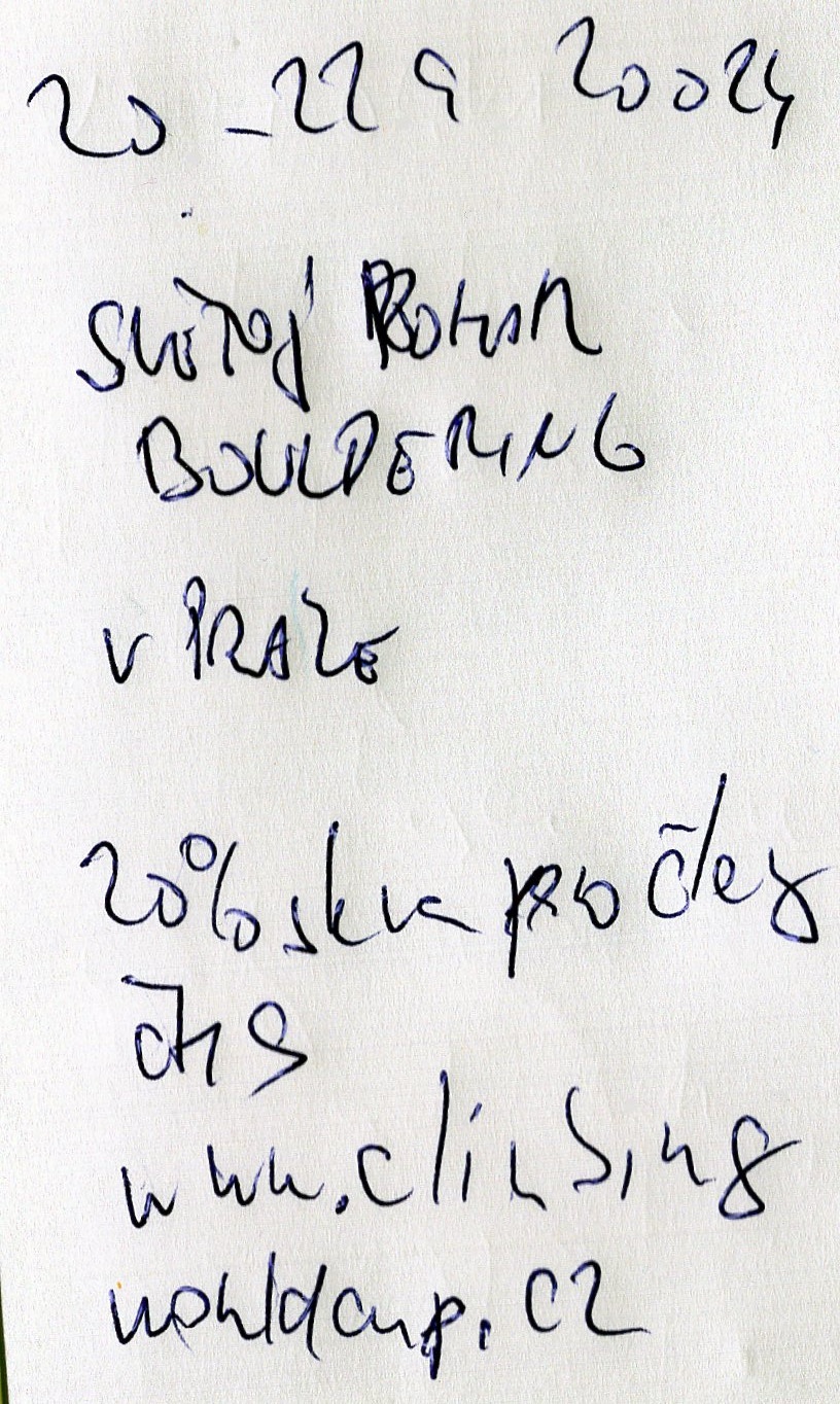 IFSC dala Světovému poháru v boulderingu v Praze kladné hodnocení. Proto se bude konat stejný závod i letos. Zvýhodněné vstupné pro členy ČHS o 20 % lze získat na www.climbingworldcup.cz. Zadáte kód JSEMLEZEC2024 do 31. března a u vstupu se pak prokážete průkazkou ČHS. Závod se koná 20.-22. září 2024 v Praze.