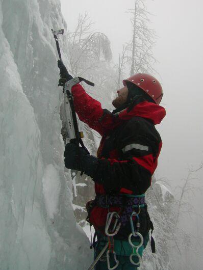 Zbyněk může až v soboto v 11nást. To je pozdě a tak trojce Renča, Radek a já nezbývá než jet busem. Sobotní ráno v Hejnici nás přivítá teplem a rozbředlým sněhem. Kráčíme nahoru Štolpišskou silnicí, je mlha, kvalita sněhu se s přibývajícími metry nadmořské výšky zlepšuje a tak doufáme že z ledů něco zbylo. Zastavujeme se pod prvním ledem, nasadíme sedáky, mačky, obejdeme spodní malý ledový výšvih a míříme k tomu většímu hornímu. Chtěl by si tam něco dát na prvním, ale ledu je dnes výrazně méně než minule. Ten směr, který se mi minule zalíbil byl mokrý, málo zaledněný a vůbec nevypadal hezky. Naštěstí vlevo se naše kus kvalitnějšího ledu. Dole kolmá, nahoře ukloněná stěnka s už vykopanými vstupy nebyla pro mne větším problémem. Tedy až na to, že nahoře byl led 10 cm od skály. Tak jsem to lano hodil shora a za začali jsme to okopávat nahoru dolů. Po chvíli se objevil maník s cepíny ostrými jak břitva. Chvíli si s námi povídal, bouldroval a taky si stěžoval na nějakého novináře, který píše o ledech v Labáku a že jeho kamarád by mu nejradši rozbil hubu. Ujistili jsme ho, že jeho kamarád je v pořadí. Pak se sólo vydal vzhůru, ale na dutých deskách nahoře znejistěl a tak jsme mu raději hodili lano shora. Za záchranu života nám děkoval a půjčil nám své cepy. Vyzkoušeli jsme si lezení bez poutek, stěnka nebyla těžká tak to šlo. Několikrát si ji přelezl na našem laně i náš nový kamarád. Pak se odporoučel a odešel. Stěnka nás omrzela a tak jsme šli zkusit něco vedle. Zde jsme si to od samého začátku hodili shora. Lezci před námi to sice lezli na prvním, ale utrhli solidní kus ledu. Led je zde mnohem horší a je problém se vůbec k tomu rampouchu dostat. Někde je měkká břečka, kterou lze cepínem seškrábat ze skály a tam kde je led, tak se po zaseknutí piklu odtrhne celá deska. Ani samotný rampouch není o moc lepší, je to tenká vrstva ledu 5 cm od skály. Po prvním zaseknutí cepín mizí až po hlavici v ledu, ještě, že jsem na druhým. Renča to ani nezkouší a jdeme zkusit spodní výšvih. Ten je víceméně podobný předcházejícímu ledu. Dáme si to každý jednou a konstatujeme, že Srbsko bude na neděli lepší zábava. Balíme a jdeme na vlak. Cestou vlakem pojídáme zásoby, konzumujeme lahváče a potkáváme další dva zoufalce, vracející se z ledů. Byli v Kořenově a ledu je tam tak třetina co před dvěma týdny. Jestli nenastane výrazné dlouhodobé ochlazení je letošní neslavná ledařská sezóna u konce. Uložte pikle na dno skříní k dlouhému letnímu spánku, snad až je v zimě zase vytáhnete bude to lepší.