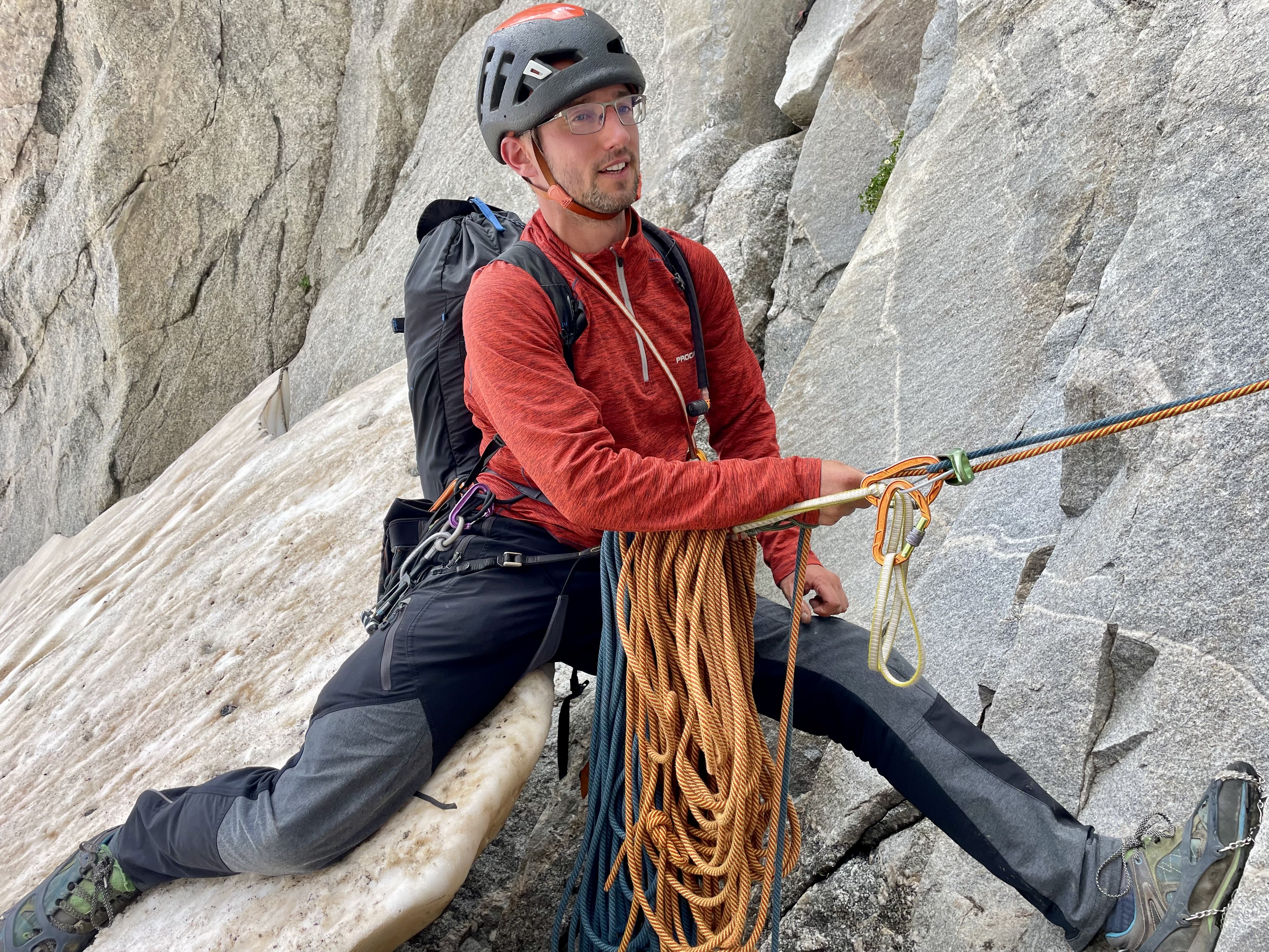 Jako první z naší trojčlenné šipky leze Tom. Několik délek jde velmi hladce a jasně. Lezení je klidné a časově úsporné a Tom se projevuje jako dobrý vůdce. Občas propojí délky, a tak se párkrát stane, že musíme začít lézt, aby lano dosáhlo na další štand. Díky tomu jsme také rychlejší. Prvních 12 délek máme za 4 hodiny a stále věříme, že večer si dáváme pivo na chatě.