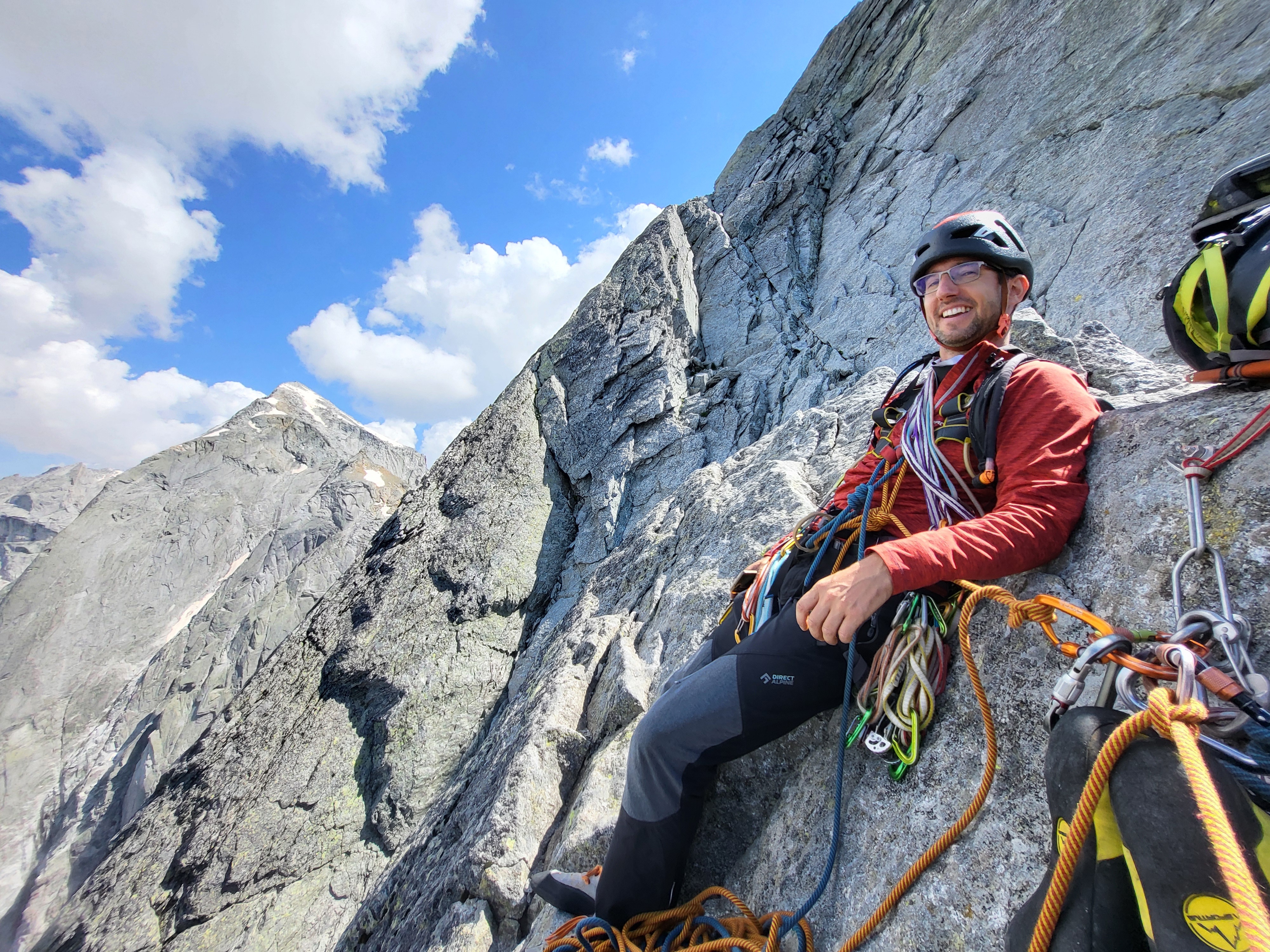 Jako první z naší trojčlenné šipky leze Tom. Několik délek jde velmi hladce a jasně. Lezení je klidné a časově úsporné a Tom se projevuje jako dobrý vůdce. Občas propojí délky, a tak se párkrát stane, že musíme začít lézt, aby lano dosáhlo na další štand. Díky tomu jsme také rychlejší. Prvních 12 délek máme za 4 hodiny a stále věříme, že večer si dáváme pivo na chatě.