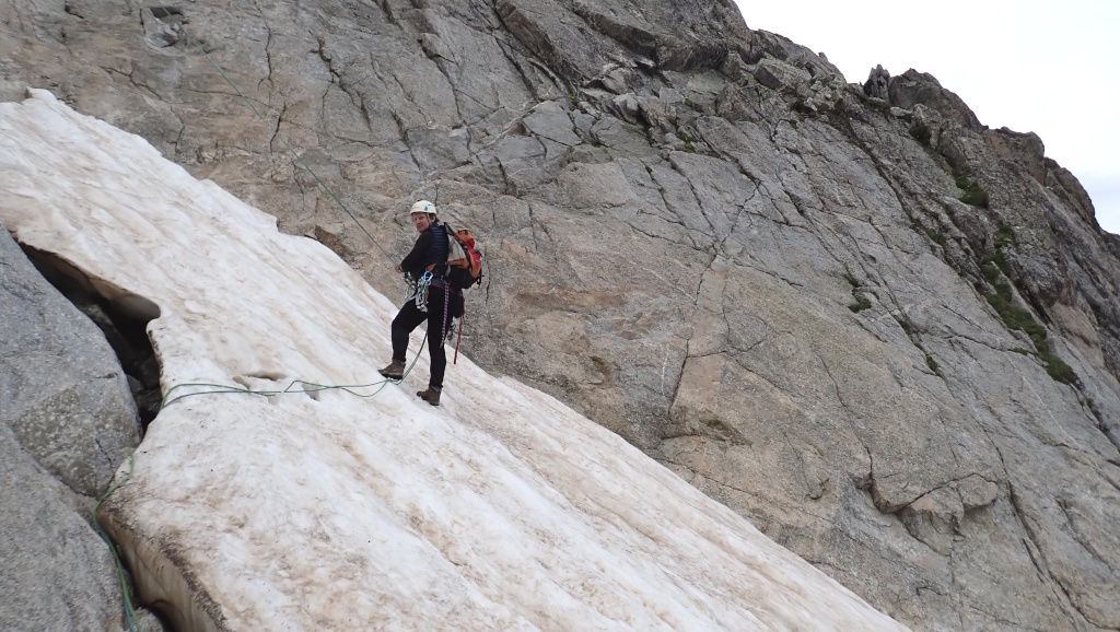 V ten den Vůdcovskou cestou sestoupila ještě dvě humanitní družstva. Heroické úsilí vyvinula trojka Tom+Erik+Lucka. Po nechtěném bivaku nedaleko hliníkového jehlanu zopakovala chybu Kuby a Pionýra zpřed dvou desetiletí a slaňovali příliš vlevo. Užili si proto rezavých skob, prodřených smyček a nakonec slanění na rozpraskaný ledovec mezi Badile a Sertori.