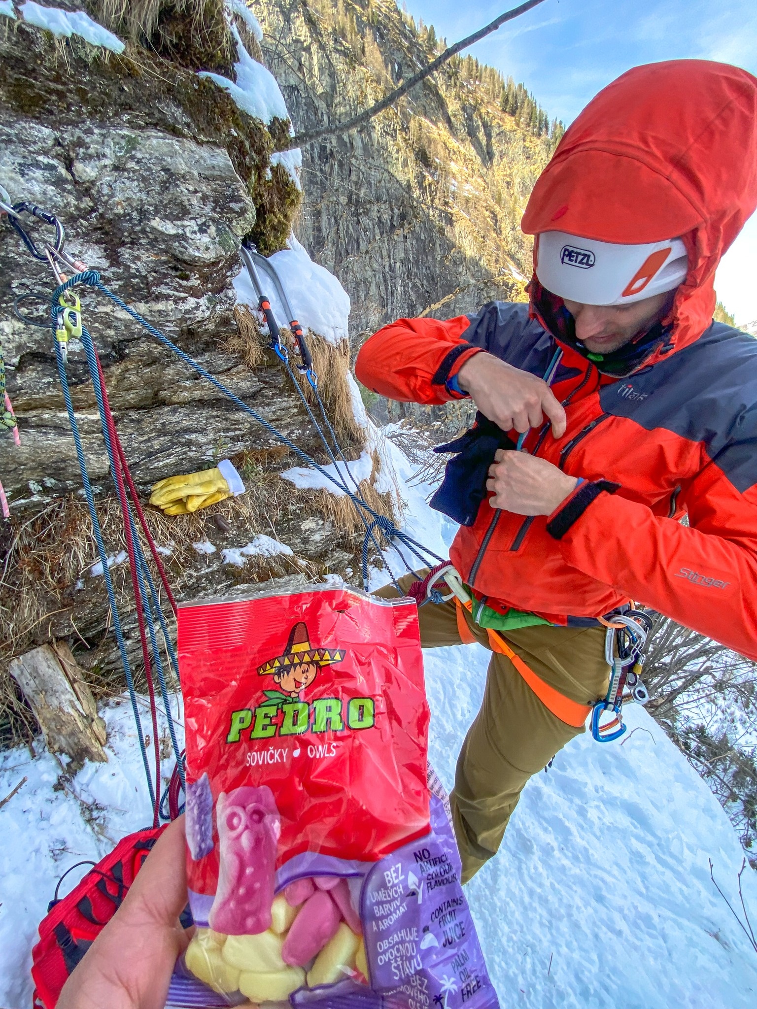 Budík ještě dřív než předešlé dny, opět máme pomalejší ráno o 30 min oproti plánu. Oba po vstanutí z postele sotva chodíme, jak nás tahají lýtka. Balíme a v plánu máme Amertaler WI 4 až 5, led je oproti ostatním o dost výš, okolo 2 000 m.n.m., jelikož se má oteplovat, tak se to hodí. Led lezl nedávno Kovi a psal "hezký kolmý led", tak se smějeme, že když Kovi psal "kolmý", tak to pro nás bude převislý :D. Pod ledem, ale zjišťujeme, že už tam je jedna dvojka a jedna trojka, tak volíme ledy vedle, které jsou lehčí, ale také pěkné. Začínám tahat, ale u třetího šroubu už nejsem schopný stát na nohách ani se držet rukama, chvíli sedím v šroubu, zkouším to znovu, ale cyklím se a opět návrat k šroubu a pokus, ale nikam to nevede a pouštím dopředu Tomáše, ten může i když už nemůže, takže to v klidu vyběhne a pak pokračujeme ještě traverzem pod další led, jelikož Tomáš chce lézt, i když už nechce :D dávám ještě ten, který je zakončený výlezem v potoce, po stromech a v bahně, pak už jen slanění a cesta domů.