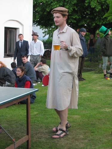 Po předání darů novomanželům včetně celohumanitního leporelo-fotoalba se přežraní hosté vrhli na sportovní hrátky - jízdu na lehacím a tandemovém kole, ping pong a volejbal s týmy deset na deset. Jen co zapadlo slunce za obzor a míč už nebyl vidět, naladil oddílový maestro Hrb kytaru a spustil své vypalovačky. Ohýnek pěkně hřál, pivo teklo proudem a tak někteří jedinci vydrželi až do časných raních hodin. Jelikož se veselice neúčastnil ani Čuňas ani Buřt, zůstal pivní rekord na devíti půlitrech. Gratulujeme rekordmanovi!!!