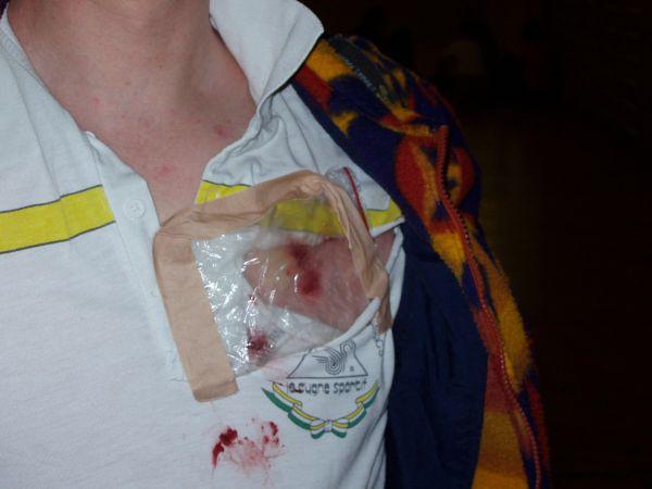 Omyl? Obvaz je na tričku místo na těle