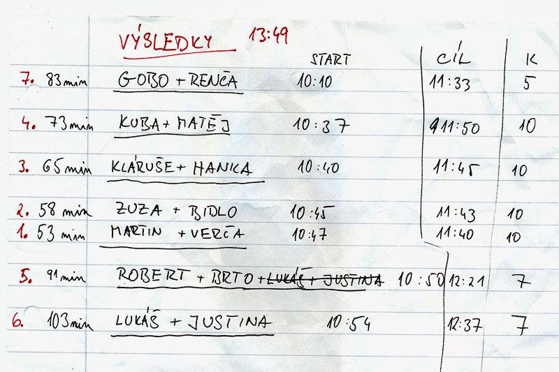 Výsledky orientačního běhu