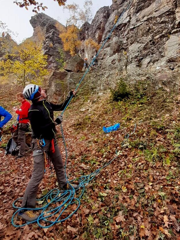 Dál od skály jde lano lépe stáhnout