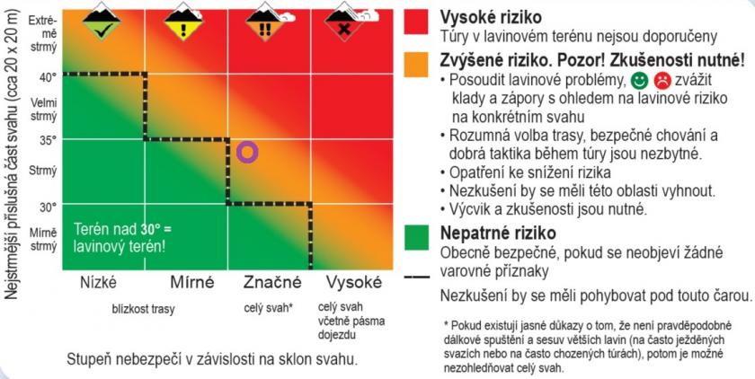 Lavinové stupně, fialové kolečko je asi oblast, k4