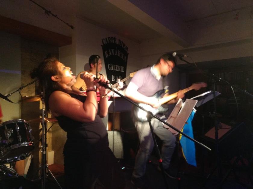 Widiya zpívá a Sejk tvrdí muziku na baskytaru