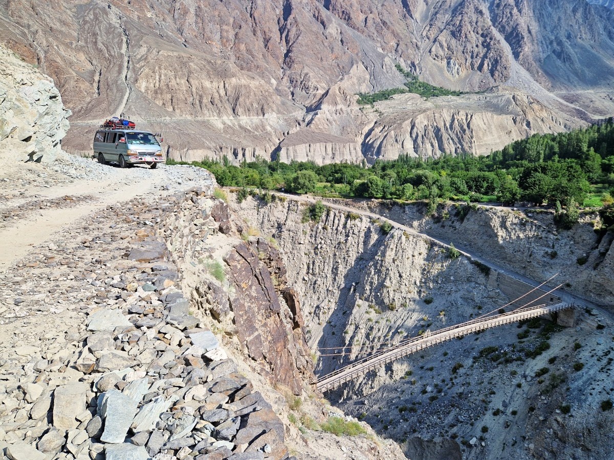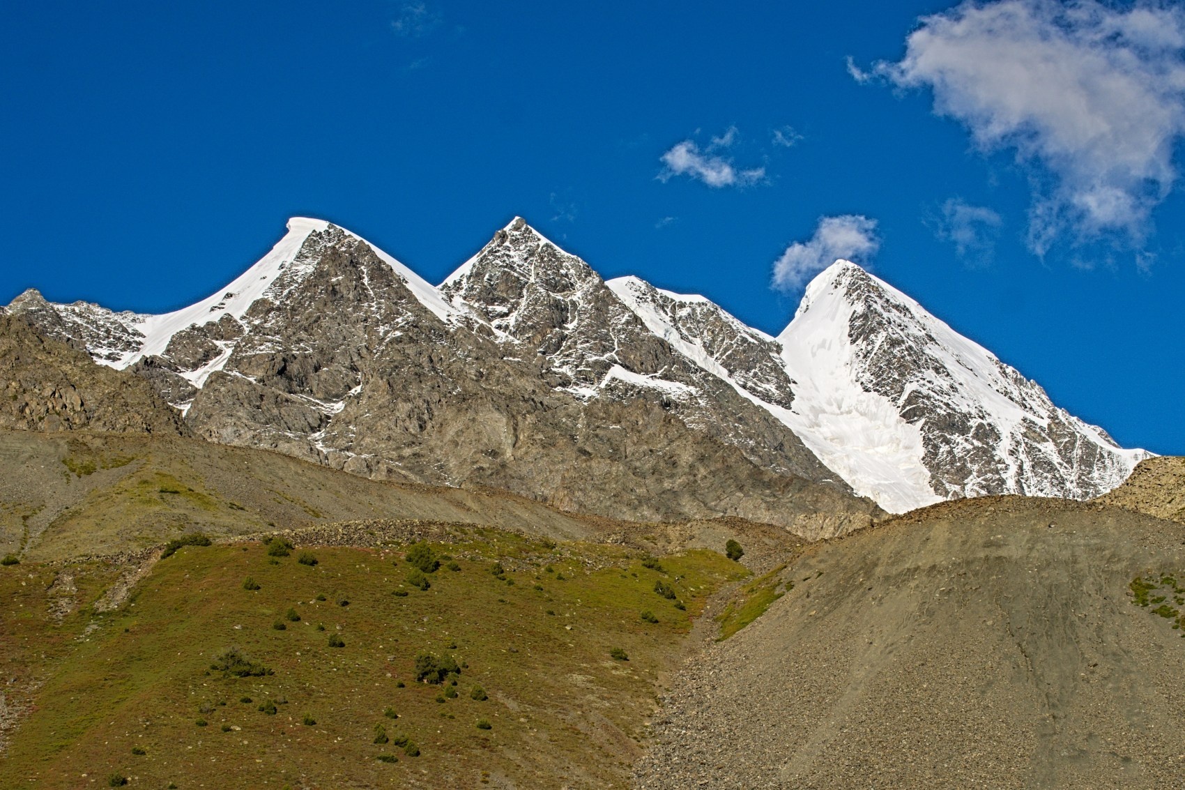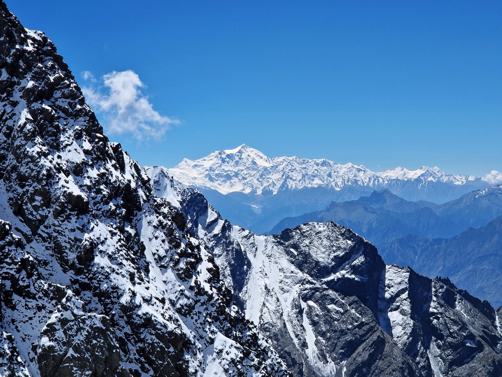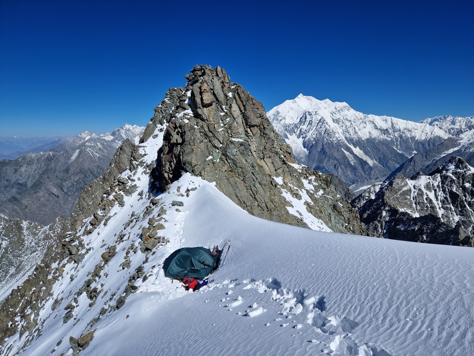 Bilchar Dobani. Výstup zleva SZ hřebenem. Japnci to dali tim žlabem.
