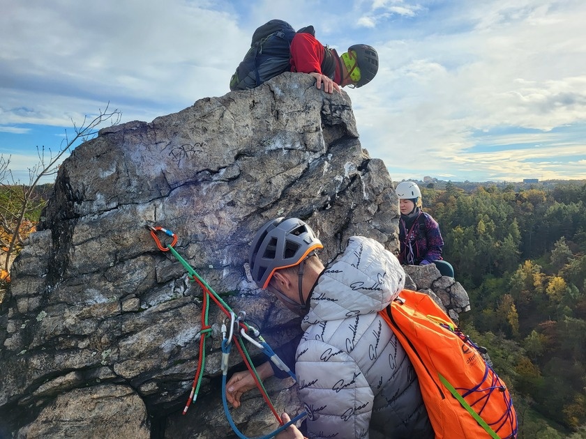 druhý lezec míří dolů