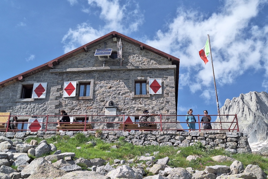 Orientační cedule před chatou Gianetti