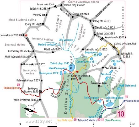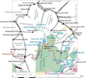 Výřez z Hlaváčkova podrobného plánu Tater včetně vyznačených nepřístupných vrcholů a dolin zašlu na vyžádání mejlem.