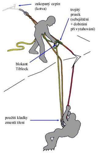 Nácvik pokročilejších lanových technik, vytahování z ledovcové trhliny.