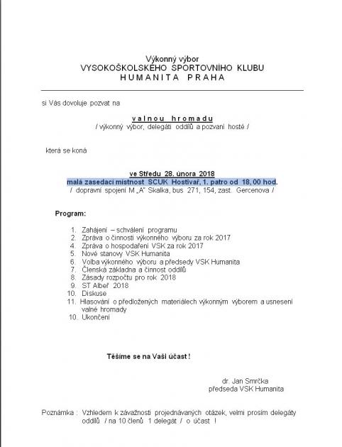 Valná hromada VSK Humanita