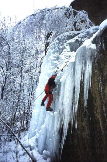 Vysoké Tatry, Gerlach, Karčmarův žlab, skok ledopádu
