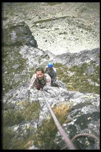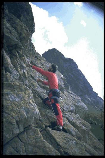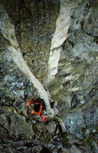 Foto: Kuba Turek, 1999, létoVysoké Tatry, Kozí kopka, prvovýstup Přímou variantou pilířem z Červené doliny IV, sleduje Lukáš Blu