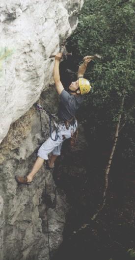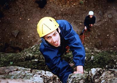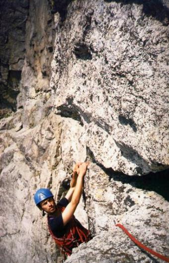Dachstein, Steinerweg IV+, vzdušný traverz ve spodní části