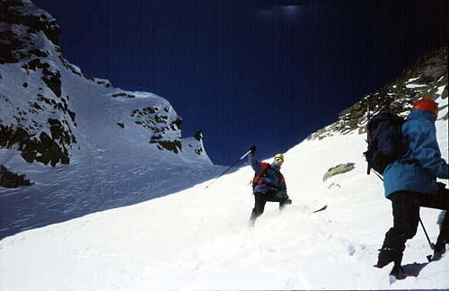 Pražský lyžař sjíždí Závrat ve Vysokých Tatrách